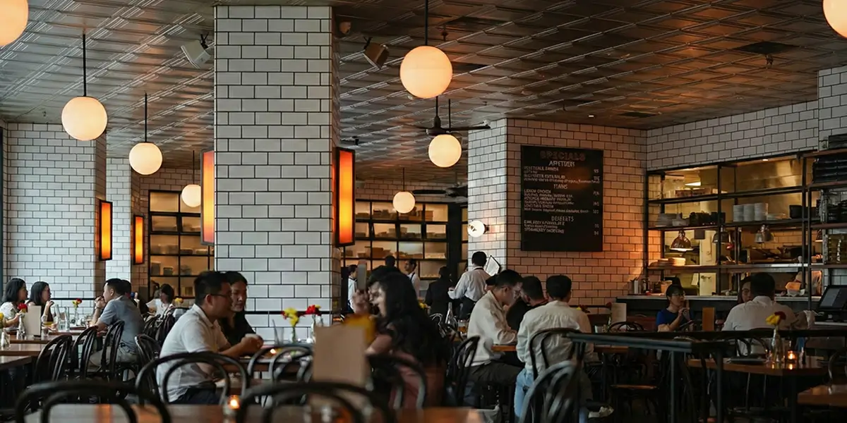Memasuki Loewy, kita akan langsung disambut oleh atmosfer bistro gaya tahun 1940-an yang terinspirasi dari Paris dan New York. Desain interiornya sangat mendetail, menggabungkan dinding bata putih (white brick walls) dengan kursi perjamuan kulit (leather banquettes) yang menciptakan kesan informal namun tetap berkelas.